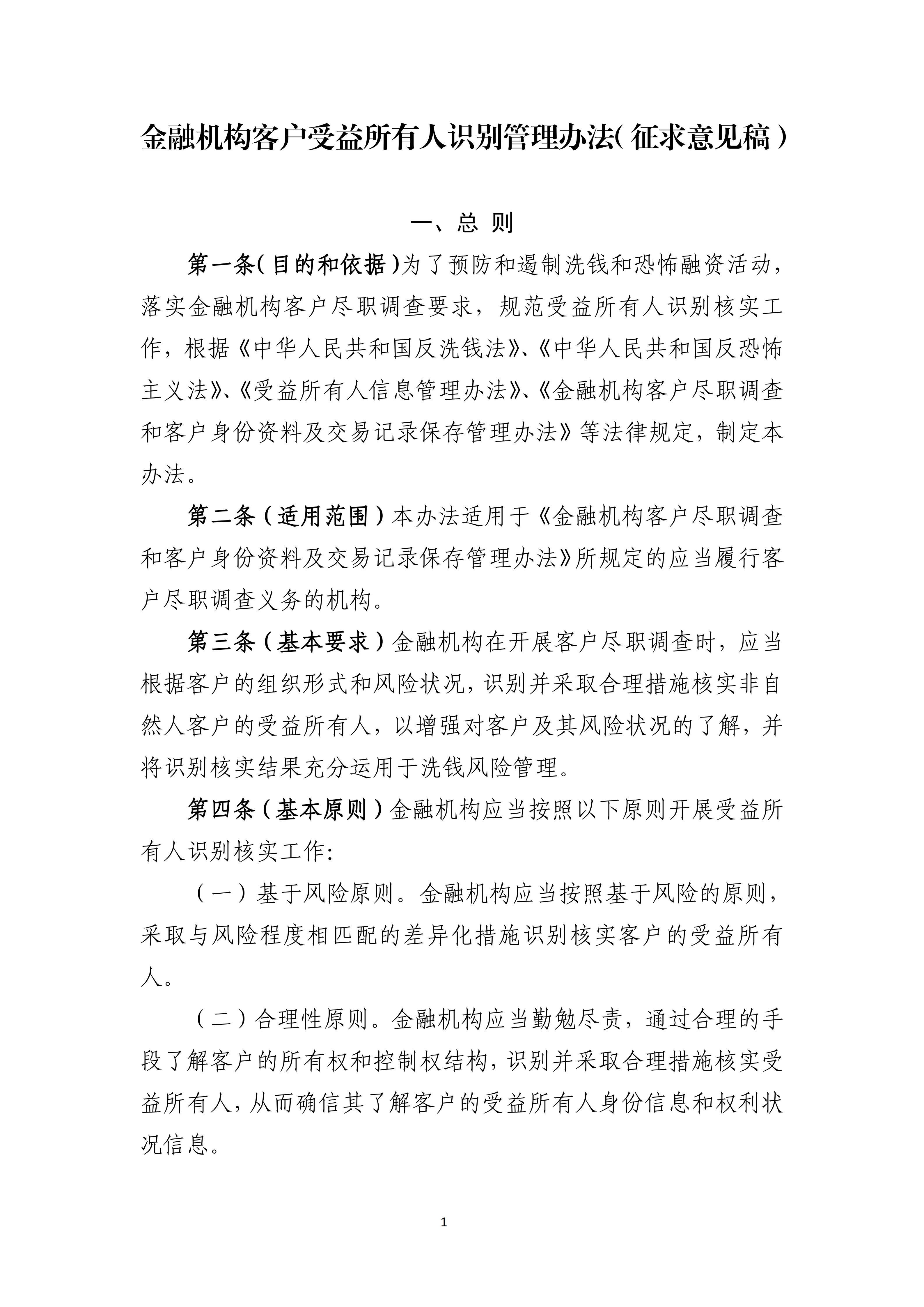 【反洗钱法律法规】金融机构客户受益所有人识别管理办法(征求意见稿)