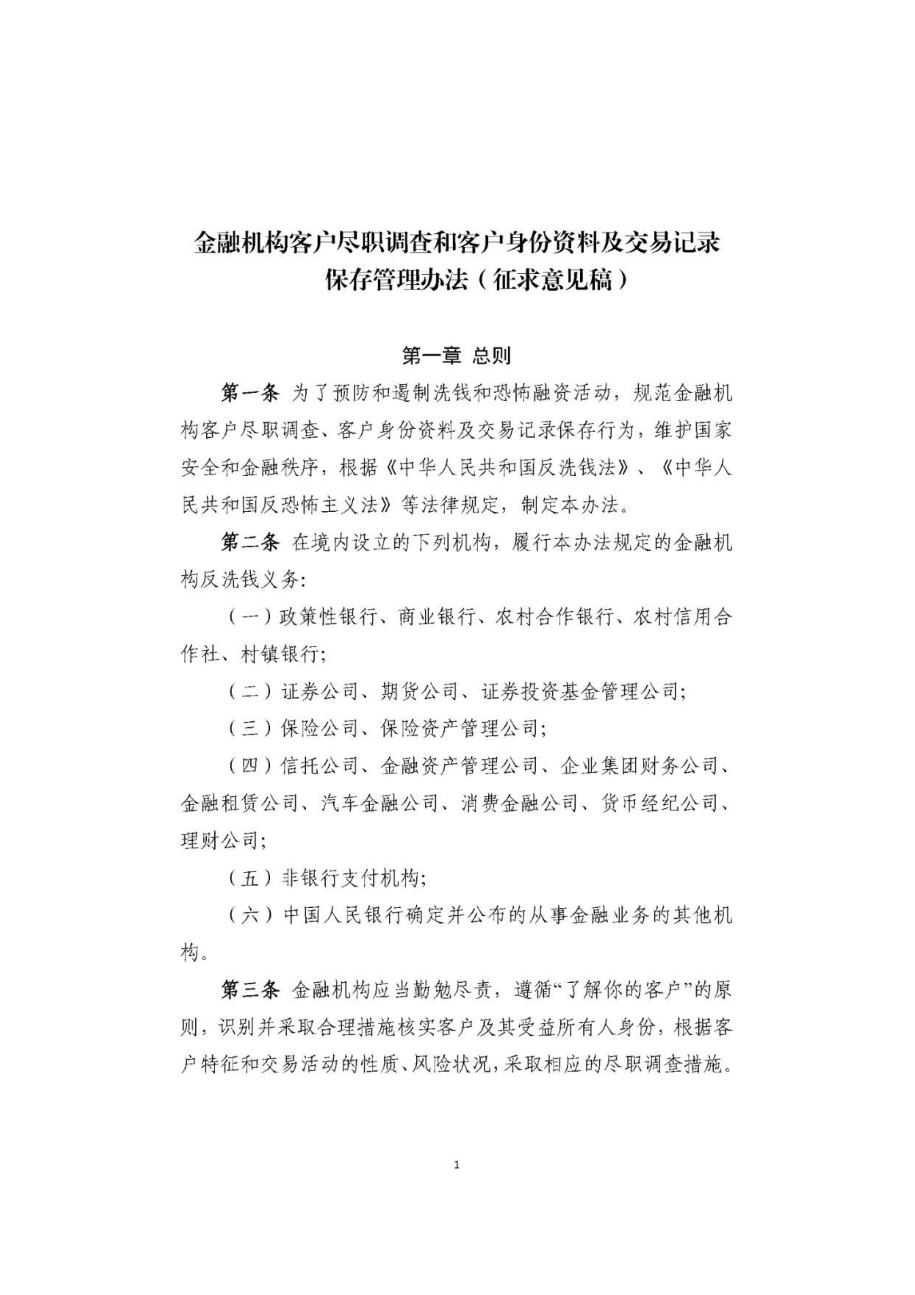 【反洗钱法律法规】金融机构客户尽职调查和客户身份资料及交易记录保存管理办法(征求意见稿)