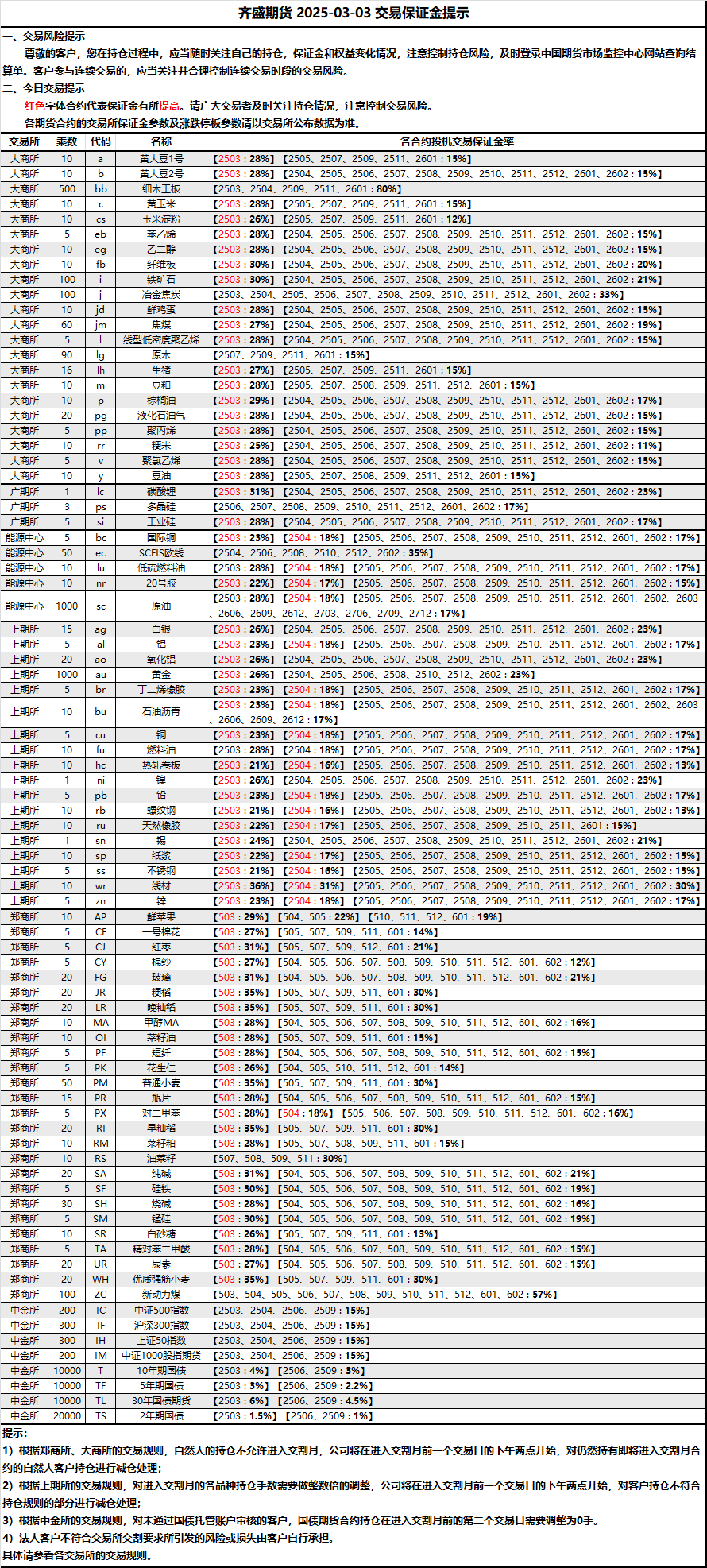 2025-03-03 期货保证金