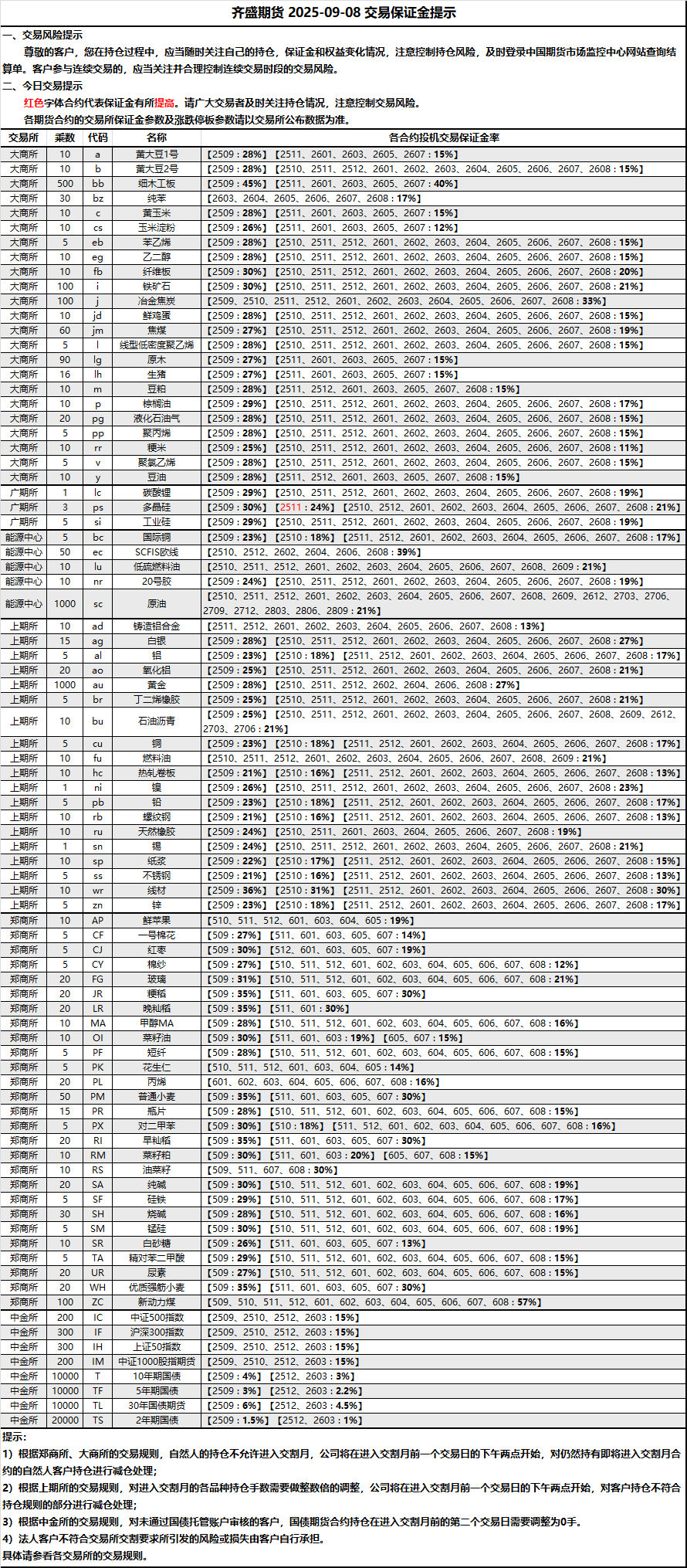 2025-09-08 期货保证金