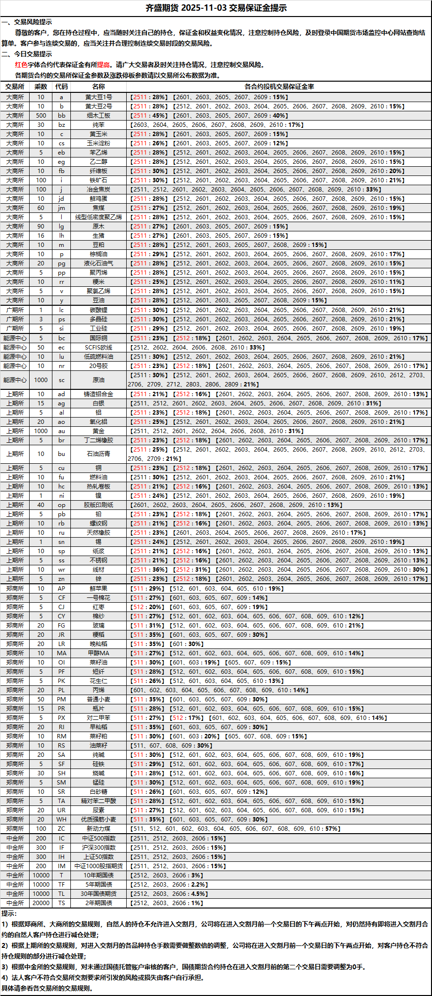 2025-11-03 期货保证金