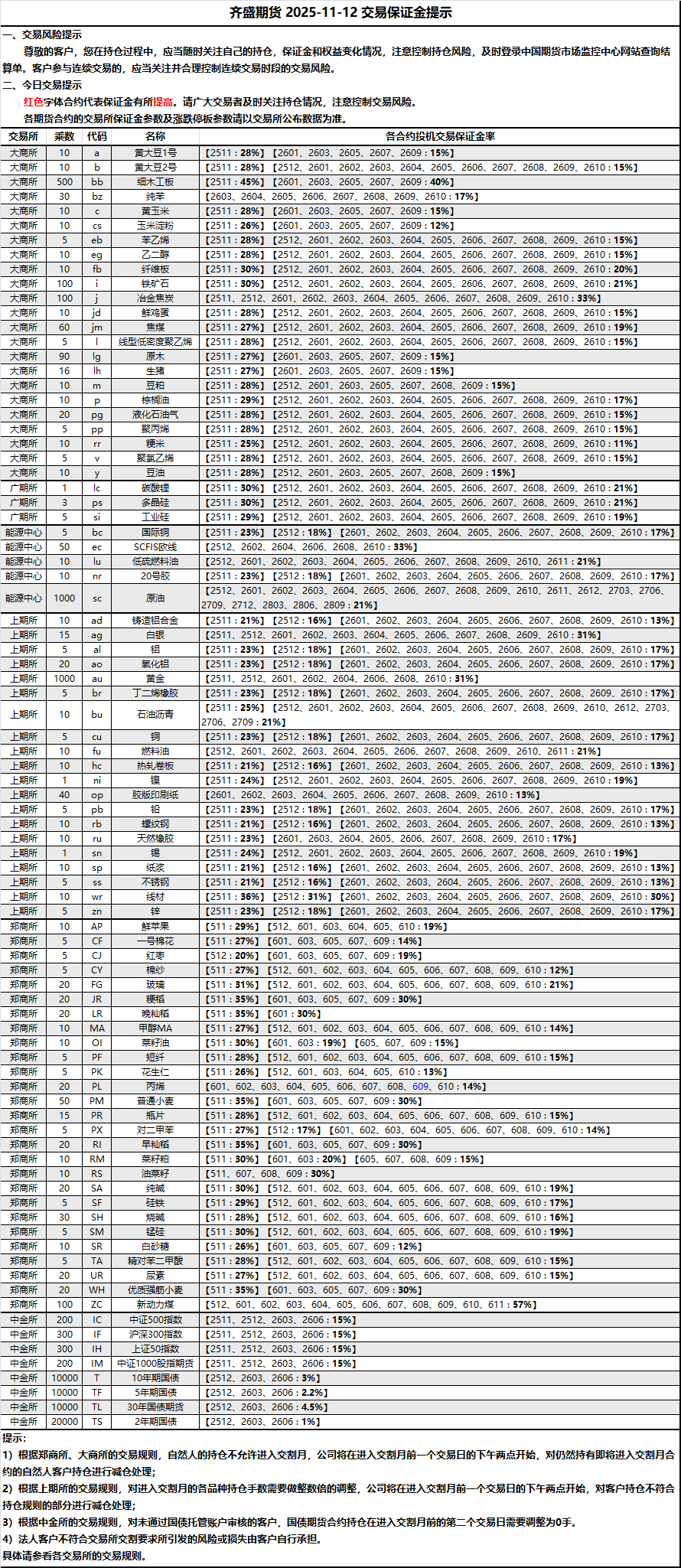 2025-11-11 期货保证金