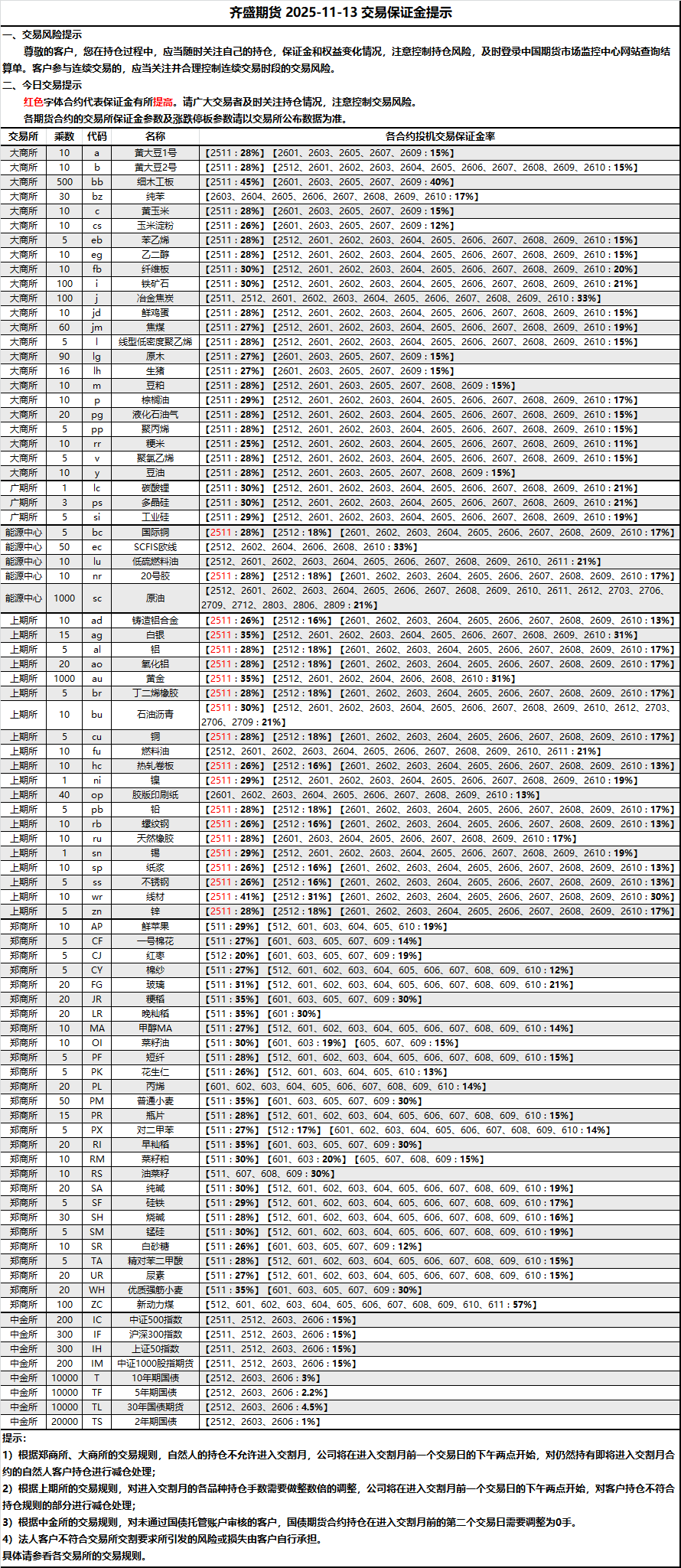2025-11-13 期货保证金