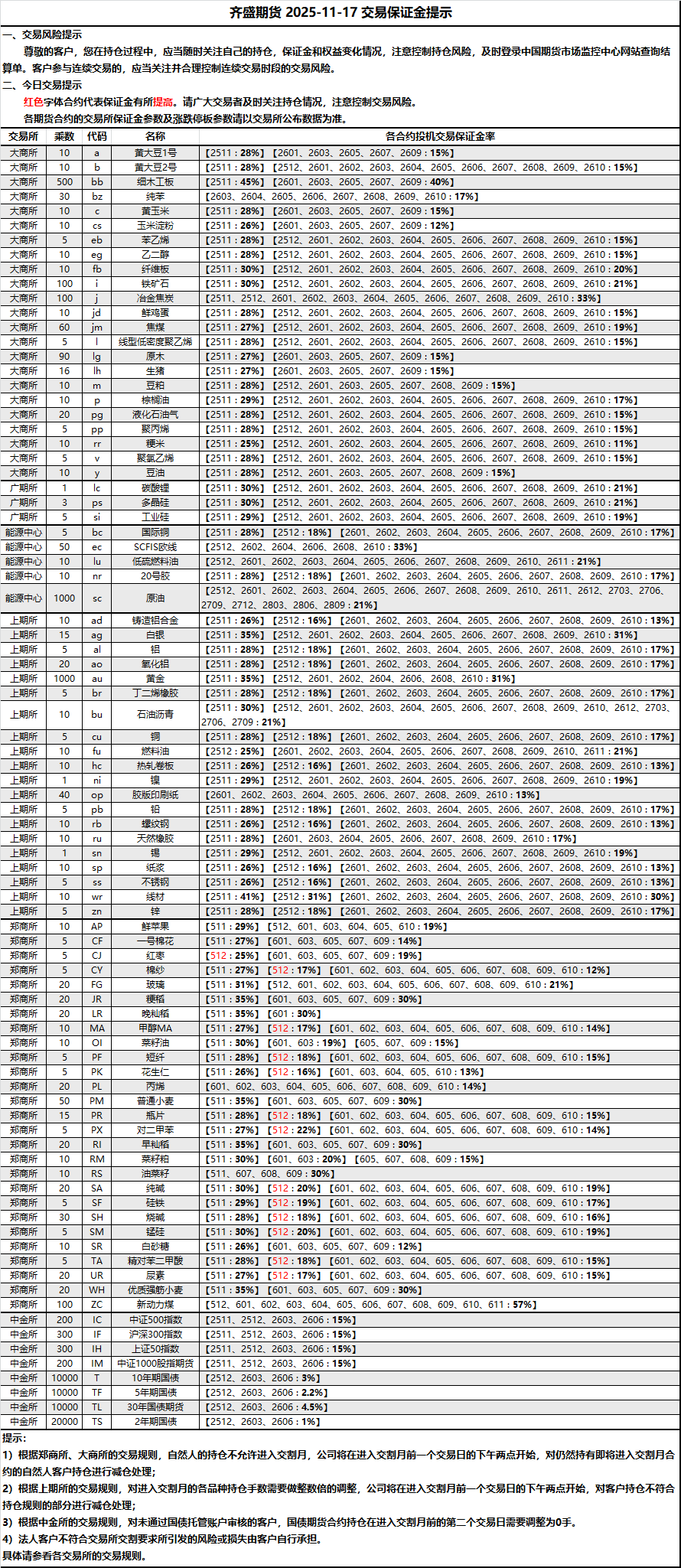2025-11-17 期货保证金