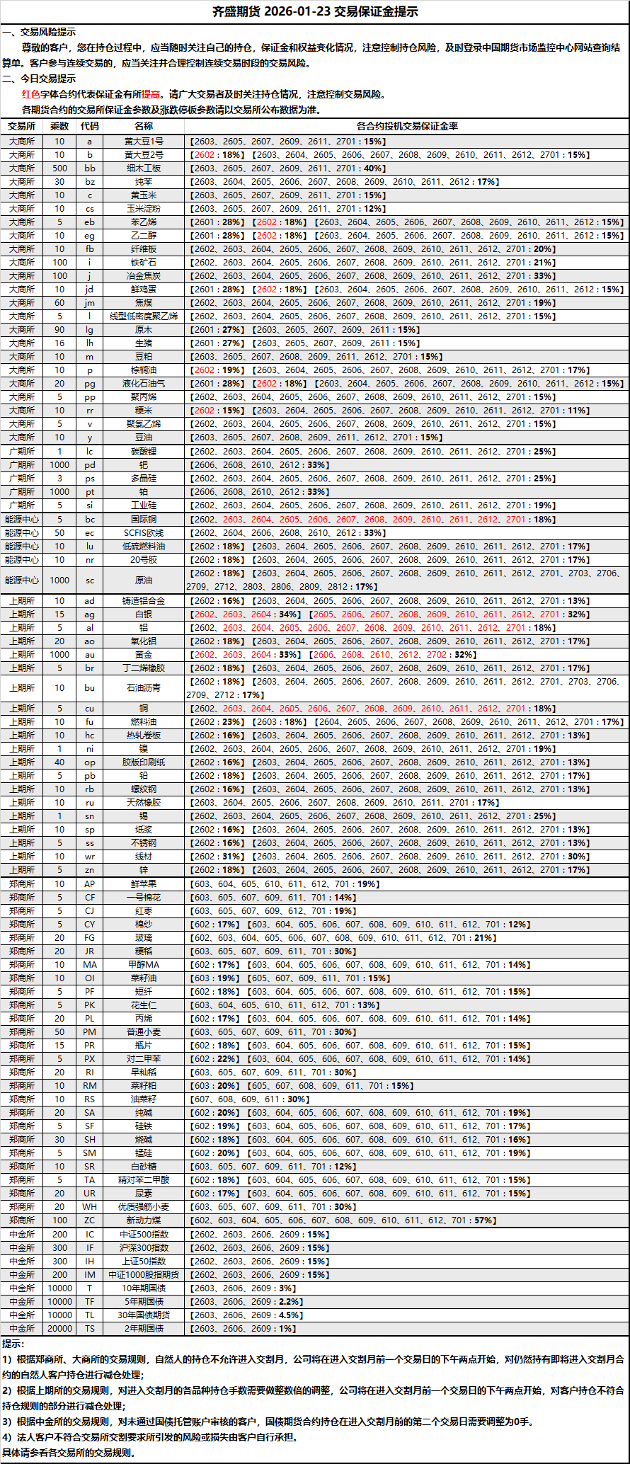 2026-01-23 期货保证金