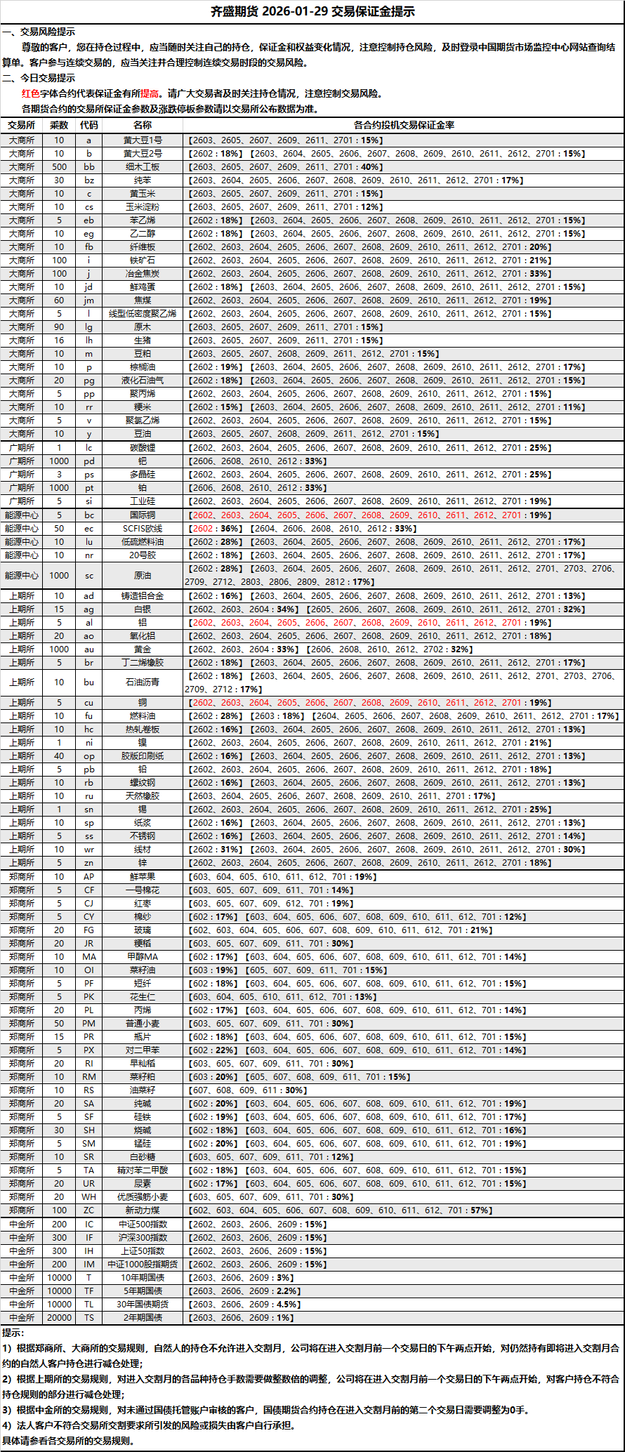 2026-01-29 期货保证金