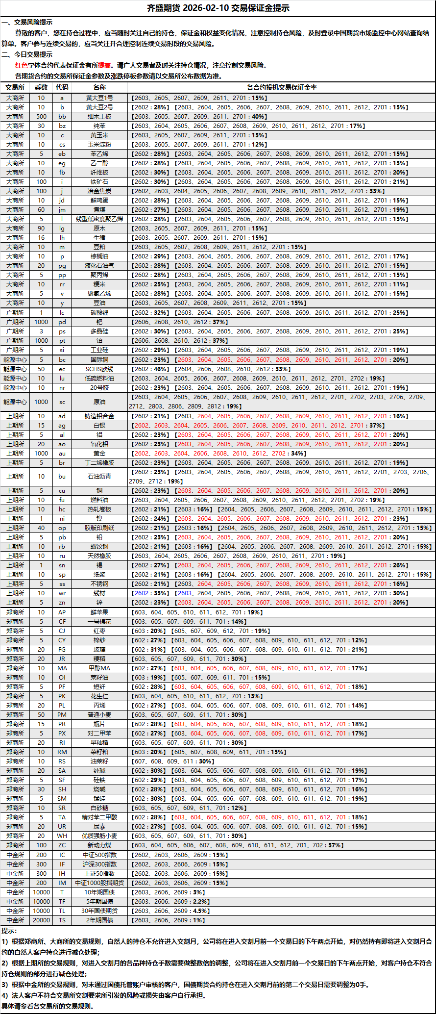 2026-02-10 期货保证金