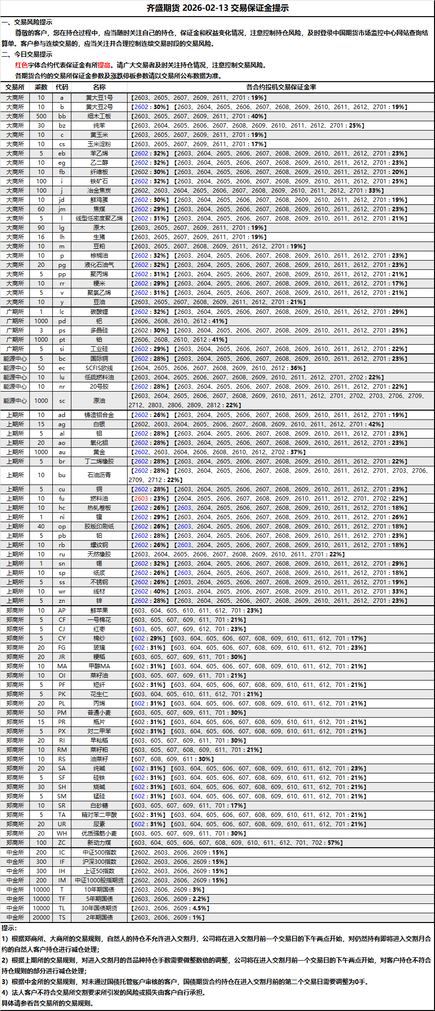 2026-02-13 期货保证金