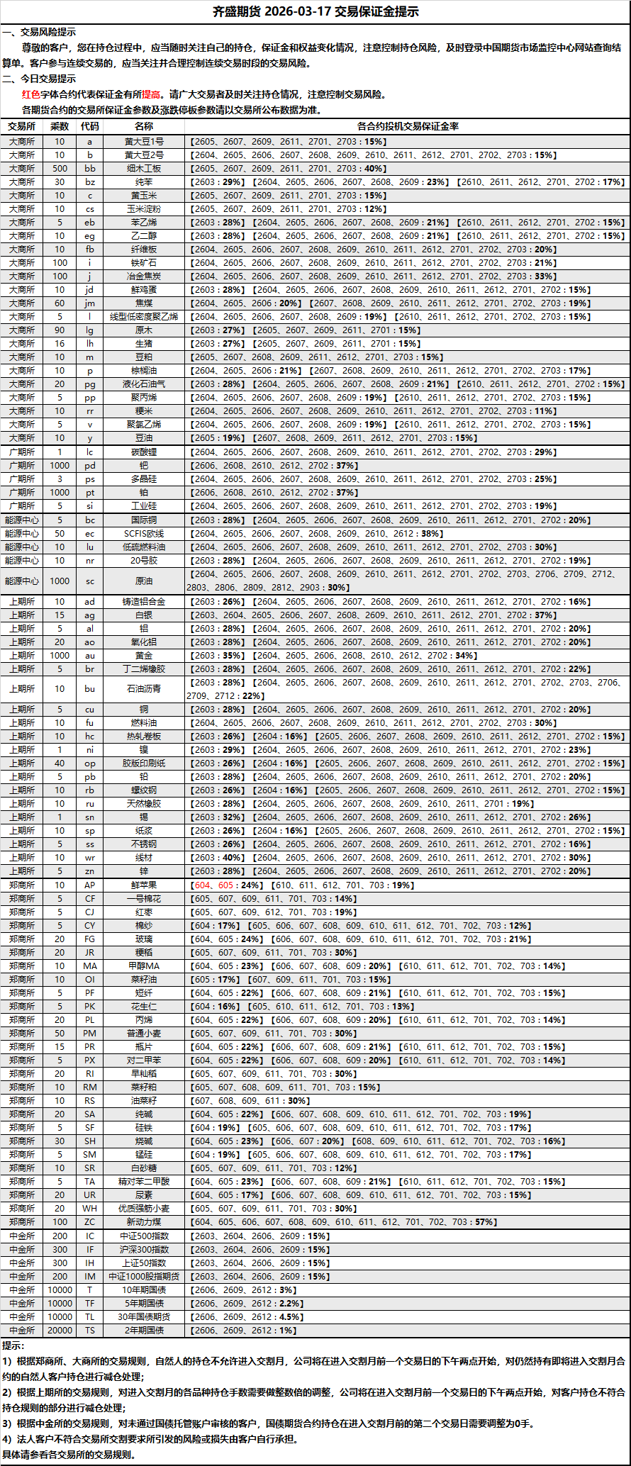 2026-03-17 期货保证金