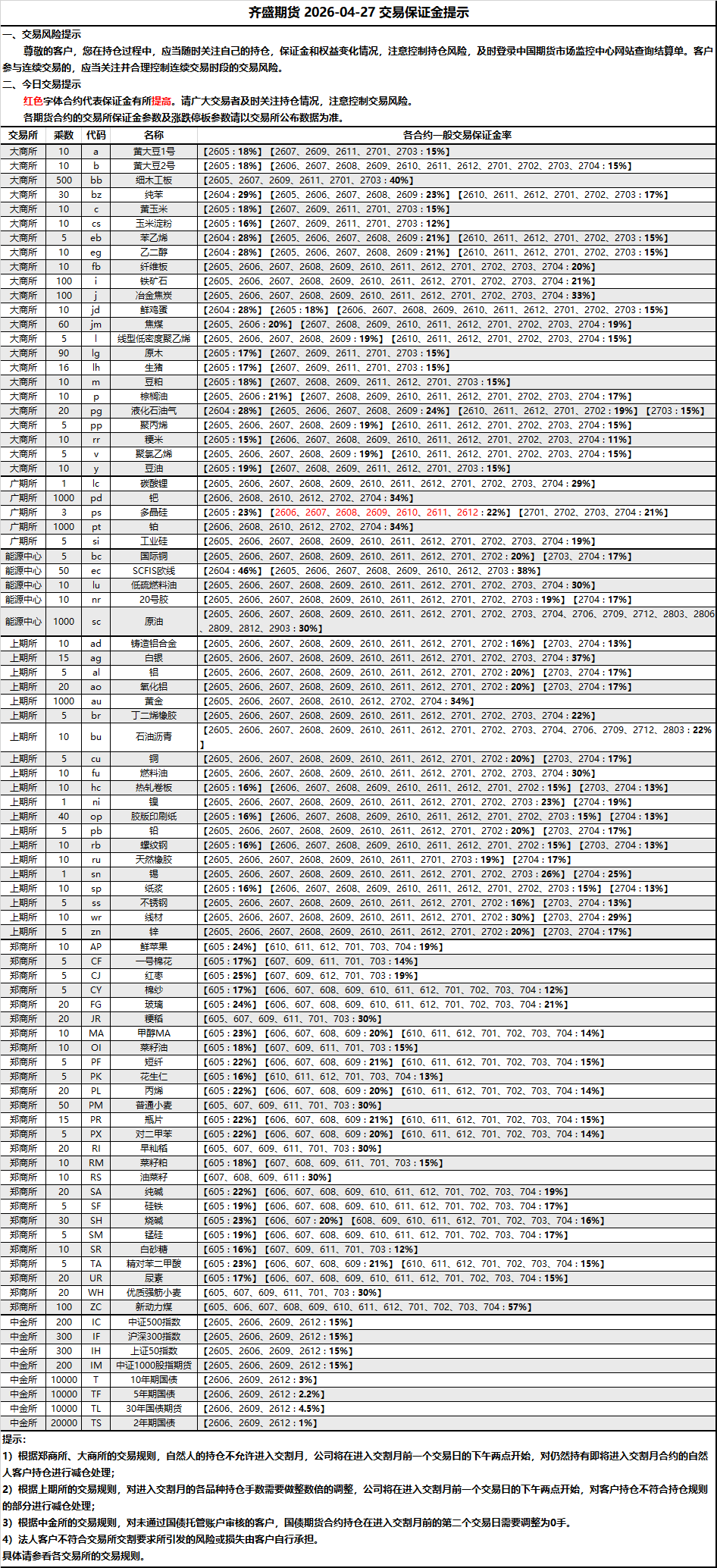 2026-04-27 期货保证金